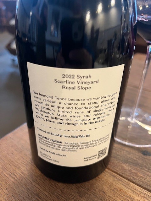 • 2022 Tenor Syrah Lawrence Scarline Vineyard + Va Piano Vineyard – USA, Washington, Columbia Valley