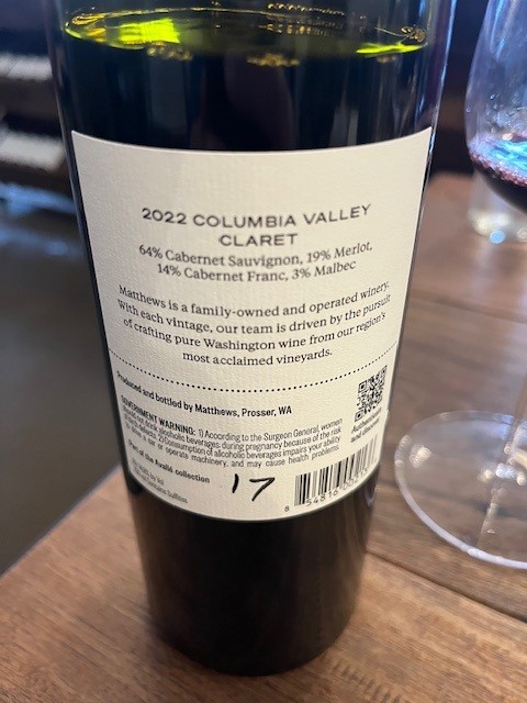 • 2022 Matthews Claret – USA, Washington, Columbia Valley